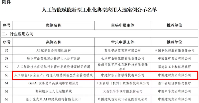 ? 2024年入選《人工智能賦能新型工業化典型應用入選案例公示名單》